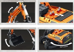 Questo kit unisce il montaggio creativo alle funzioni realistiche dei mezzi da costruzione. Una volta assemblato, otterrai un robusto escavatore cingolato con meccanismo dettagliato del braccio, benna e rotazione completa della sovrastruttura a 360°. Il controllo è intuitivo – sia tramite radiocomando a 2,4 GHz sia comodamente dal telefono mediante app Bluetooth.