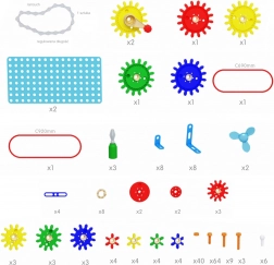 Il set comprende decine di ingranaggi, pulegge, cinghie di trasmissione, catena, viti, dadi, supporti e cacciaviti manuali. È ideale per l’educazione STEM, lo sviluppo del problem solving e della collaborazione in team. I bambini possono costruire dispositivi sperimentali, ventilatori, sistemi di ingranaggi o macchine semplici e osservare subito i risultati.