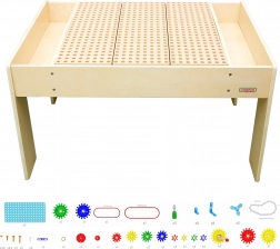 Con il tavolo STEM MASTERKIDZ i bambini comprendono facilmente i principi di ingranaggi, rotazione e trasmissione del movimento. La struttura in legno stabile con bordi arrotondati garantisce un uso sicuro, mentre il piano forato e i pannelli verticali permettono di costruire in 2D e 3D. Grazie alle vaschette laterali, i componenti sono sempre a portata di mano e si possono modificare e testare rapidamente le idee.