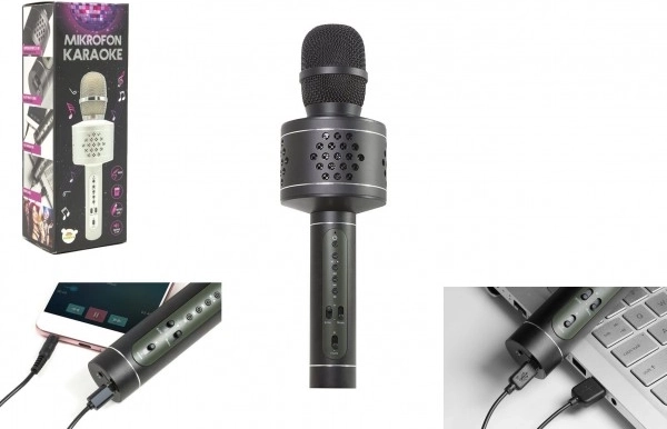 microfono karaoke, cavo di ricarica USB–Micro USB, cavo audio, manuale d’uso