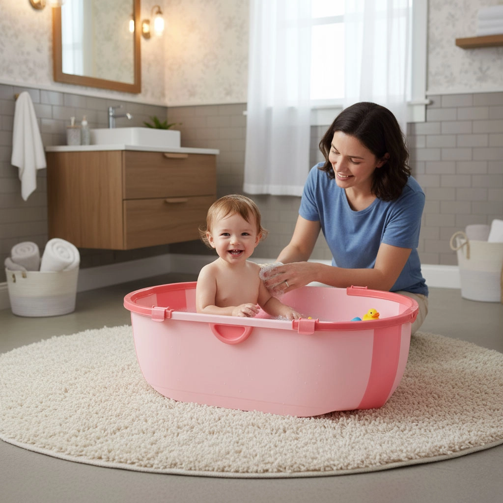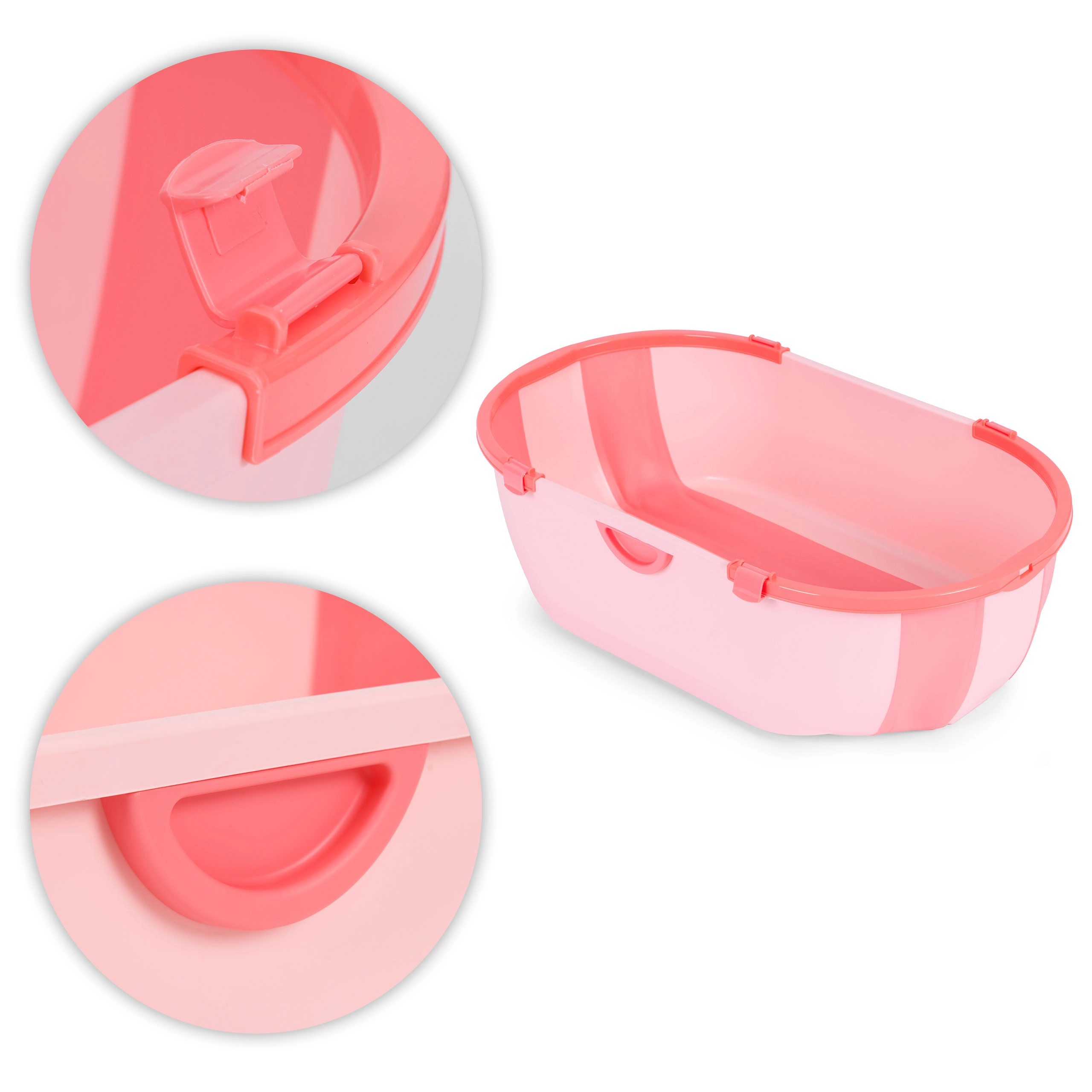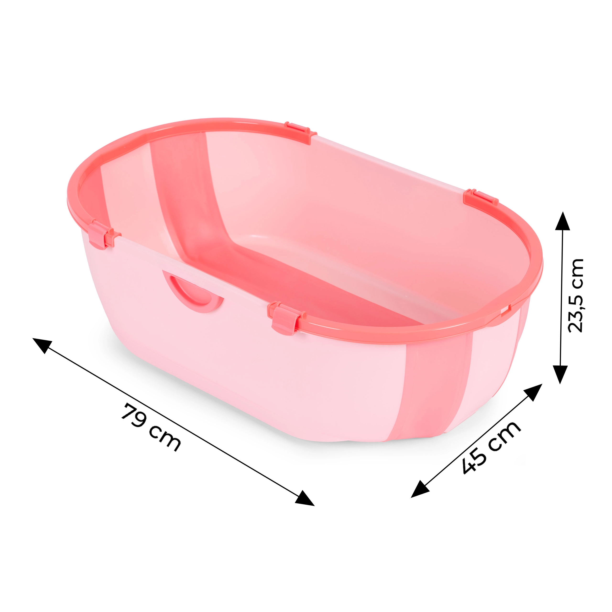 La vaschetta ECOTOYS garantisce comfort e sicurezza durante il bagnetto quotidiano a casa e in vacanza. Grazie alla struttura pieghevole, si ripone facilmente anche in spazi ridotti e si prepara rapidamente all’uso. Il termoindicatore nel tappo cambia colore quando l’acqua è troppo calda, così puoi controllare la temperatura e proteggere la delicata pelle del bambino.