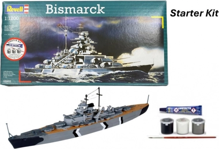 Il Revell Starter Kit Bismarck in scala 1:1200 è un'ottima scelta per principianti e modellisti esperti. Include tutto il necessario per l'assemblaggio – modello in plastica, colori di base, colla, pennello e istruzioni, così puoi iniziare subito dopo l'apertura. Il modello riproduce fedelmente la leggendaria nave da battaglia Bismarck con dettagli realistici dello scafo, del ponte e delle sovrastrutture, e offre un schema di colorazione autentico per un aspetto storicamente accurato.
