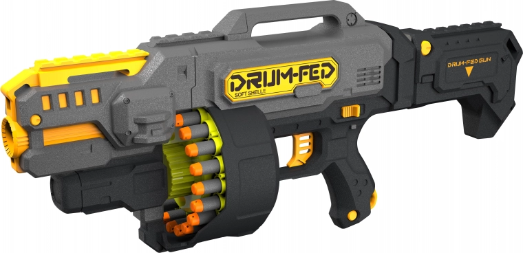Vivi un gioco d’azione con la mitragliatrice a proiettili in gommapiuma con caricatore a tamburo, che unisce divertimento sicuro e semplicità d’uso. La confezione include proiettili standard e con ventosa per diversi scenari di gioco, dal tiro al bersaglio ai duelli dinamici.