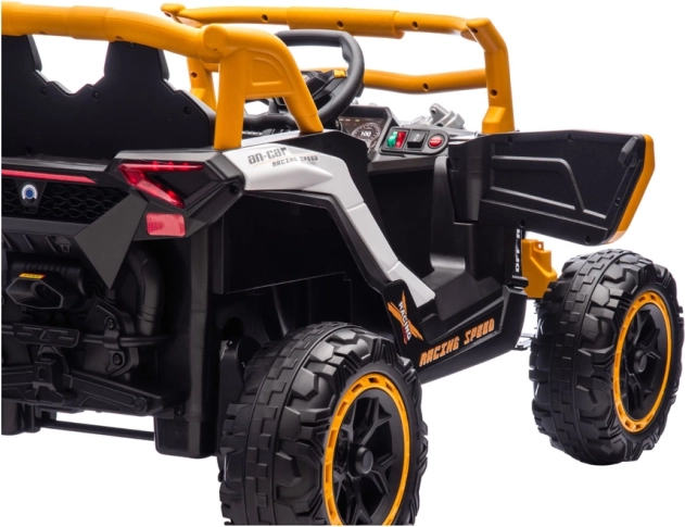 Scoprite un elegante veicolo fuoristrada per bambini con trazione 4x4, in grado di affrontare il giardino e i percorsi non asfaltati. Le grandi ruote con battistrada profondo, il roll-bar di protezione e i dettagli realistici conferiscono all’auto un aspetto autentico e aumentano comfort e stabilità durante la guida. I due sedili permettono ai bambini di condividere l’esperienza di guida.
