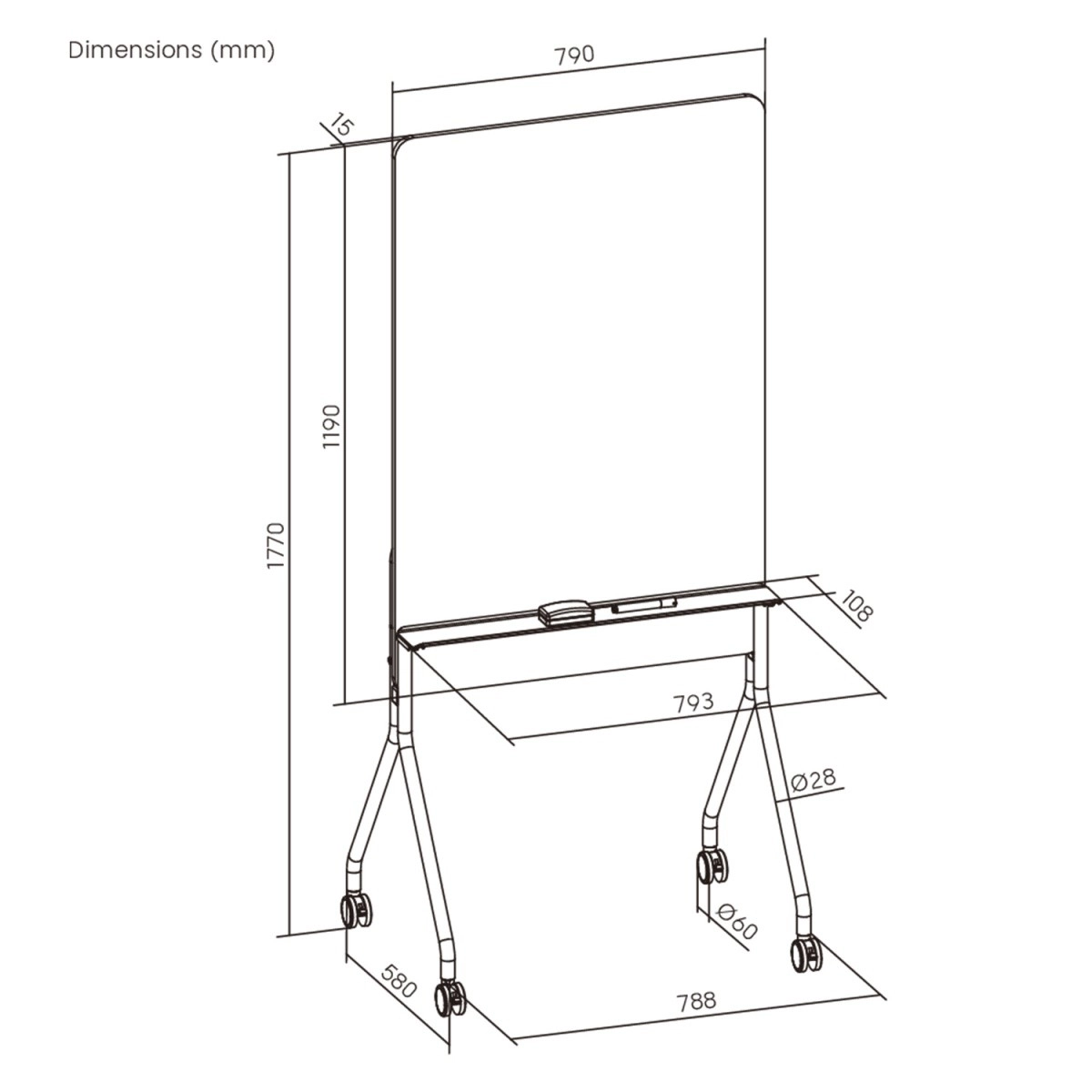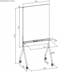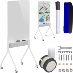 Pratica e stilosa lavagna mobile Ergo Office con orientamento verticale, dotata di superficie cancellabile a secco, 4 ruote con freno per spostamenti facili e stabilità, e dimensioni 119 × 79 cm ideali per ufficio, scuola e home office.