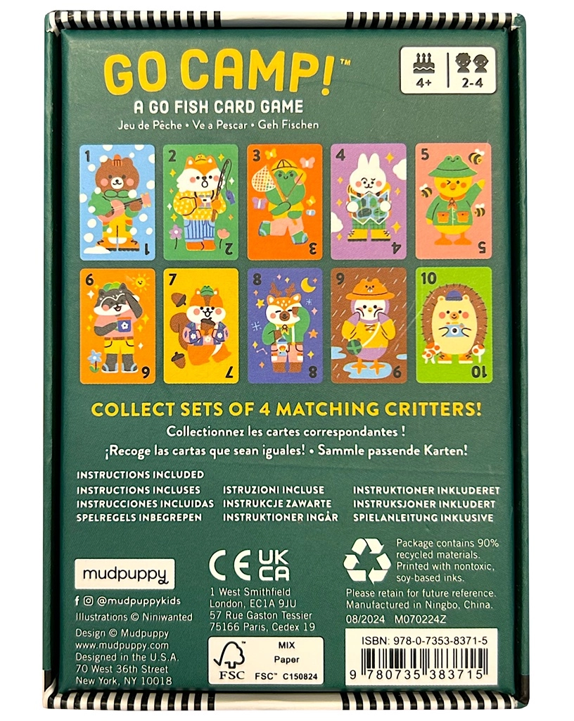 Scoprite il divertimento a tema campeggio con il gioco di carte Mudpuppy Andiamo in campeggio. Grazie alle regole semplici e alle splendide illustrazioni, piace a bambini e adulti. Il gioco è compatto, quindi perfetto da mettere nello zaino per le gite o per i giorni di pioggia a casa.