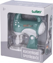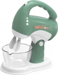 L’alimentazione è fornita da 2× batterie AA (non incluse). Le batterie si inseriscono dal lato inferiore del frullatore: per accedervi è necessario prima sganciare il frullatore dalla base. Grazie alle dimensioni compatte 16 × 6 × 12 cm si inserisce facilmente in qualsiasi set da gioco.