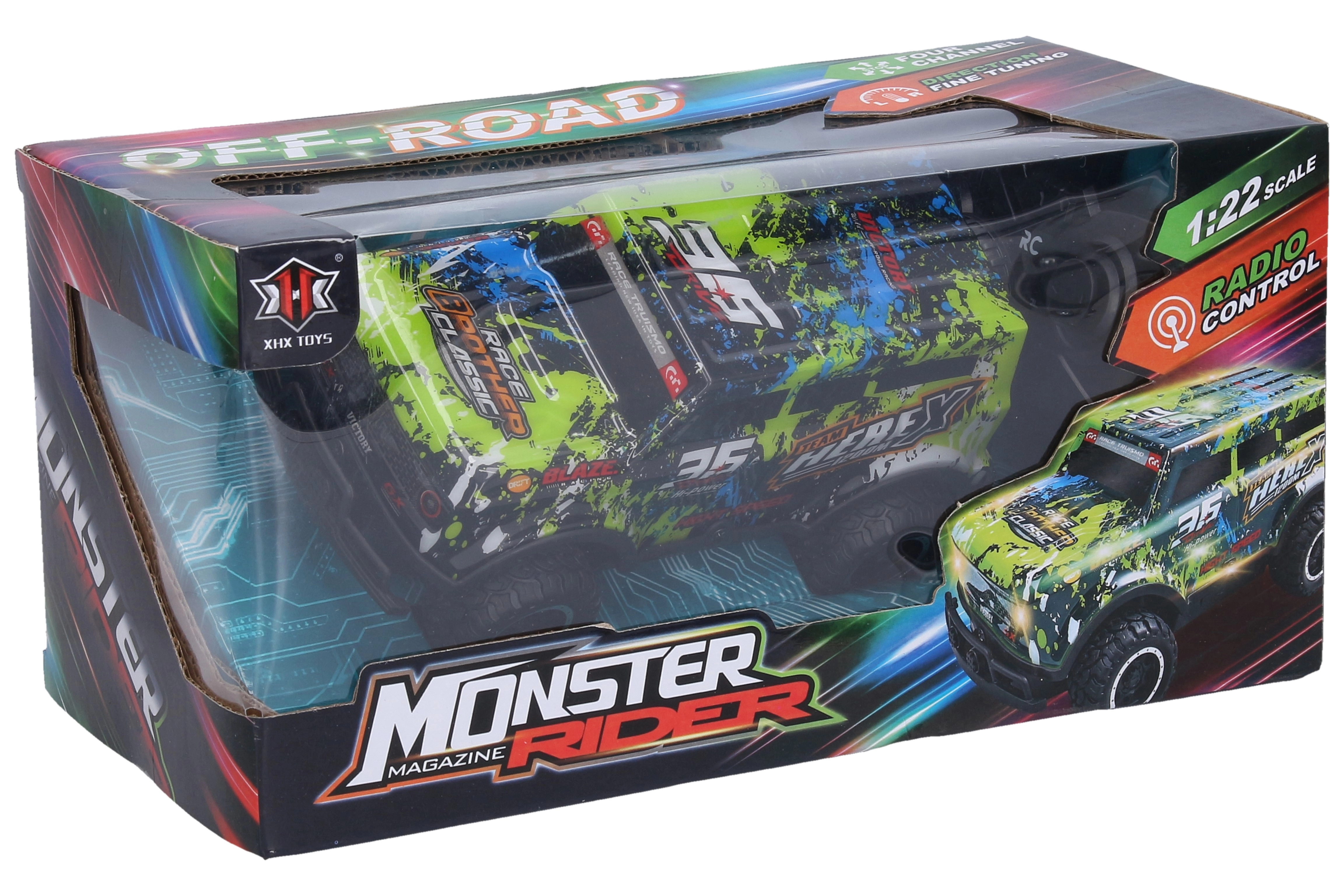 L’auto RC luminosa Monster Rider conquista al primo sguardo: grazie ai suggestivi effetti luminosi brilla durante la corsa e attira l’attenzione di ogni piccolo pilota. Le dimensioni compatte 17,5 × 9 × 7,6 cm garantiscono ottima maneggevolezza e semplicità di guida, anche negli spazi ridotti.