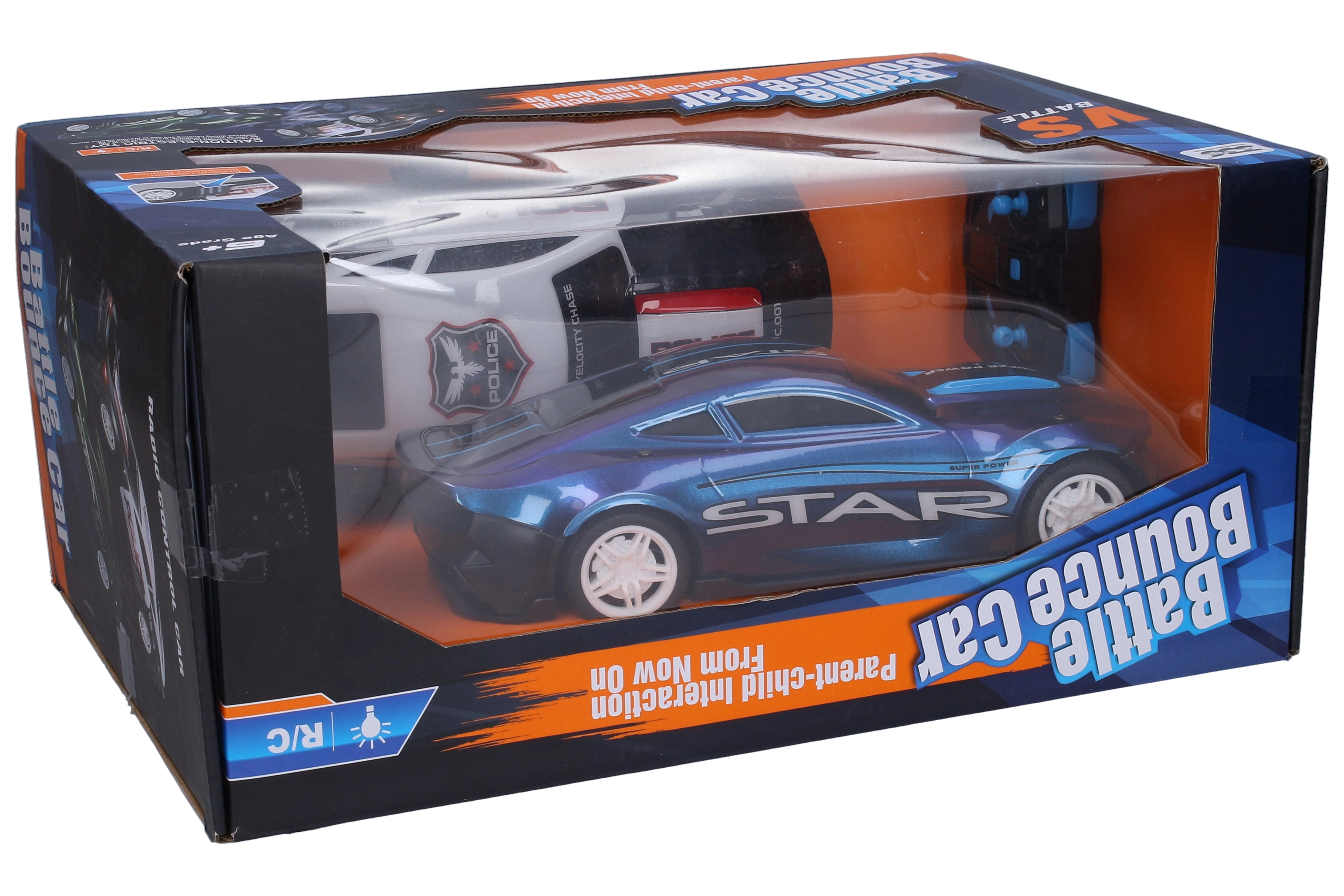 Goditi un divertimento adrenalinico con una coppia di auto da corsa radiocomandate lunghe 25 cm. Il sistema a frequenza 2,4 GHz consente un controllo fluido senza interferenze, le auto hanno effetti luminosi e un meccanismo speciale per duelli d’azione – un urto allo scarico sul lato sinistro dell’auto avversaria provoca il suo deragliamento.