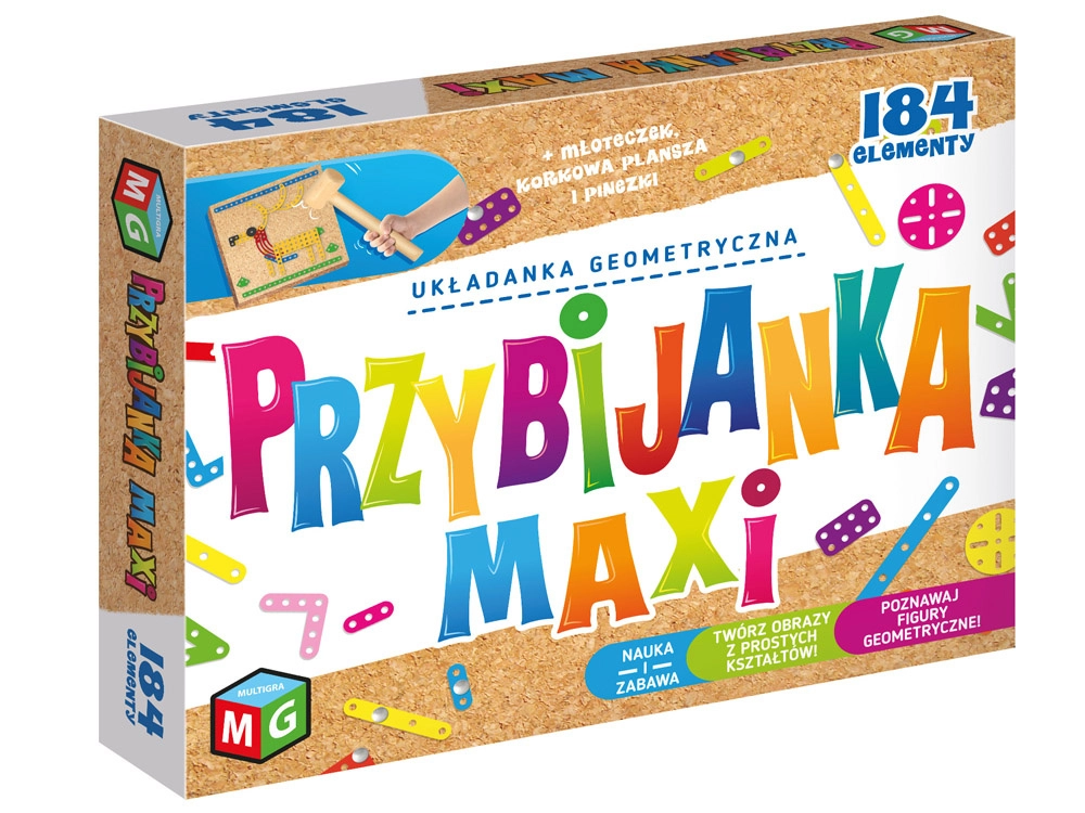 Sostieni la fantasia dei bambini e la motricità fine con il set creativo martellino in sughero MAXI. Con l’aiuto di un martello in legno, chiodini e elementi in metallo, i bambini creano le proprie immagini oppure si lasciano ispirare dal libro delle idee. Un gioco perfetto per sviluppare creatività, pazienza e coordinazione occhio–mano.