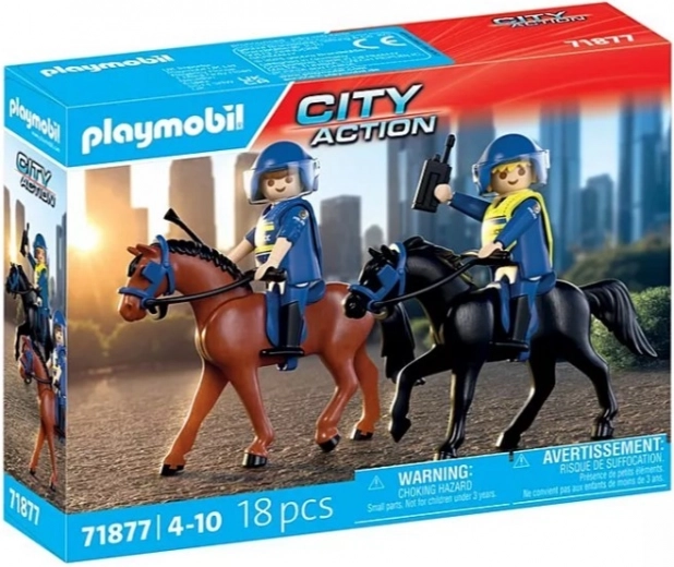 Parti all’azione con la pattuglia a cavallo della polizia PLAYMOBIL! Due personaggi di agenti a cavallo, completamente snodati e con accessori facilmente removibili, offrono ai bambini ore di gioco di ruolo creativo. I cavalli hanno selle e briglie, gli agenti caschi con visiera ribaltabile, ricetrasmittente e altra attrezzatura per pattugliamenti sicuri in città.