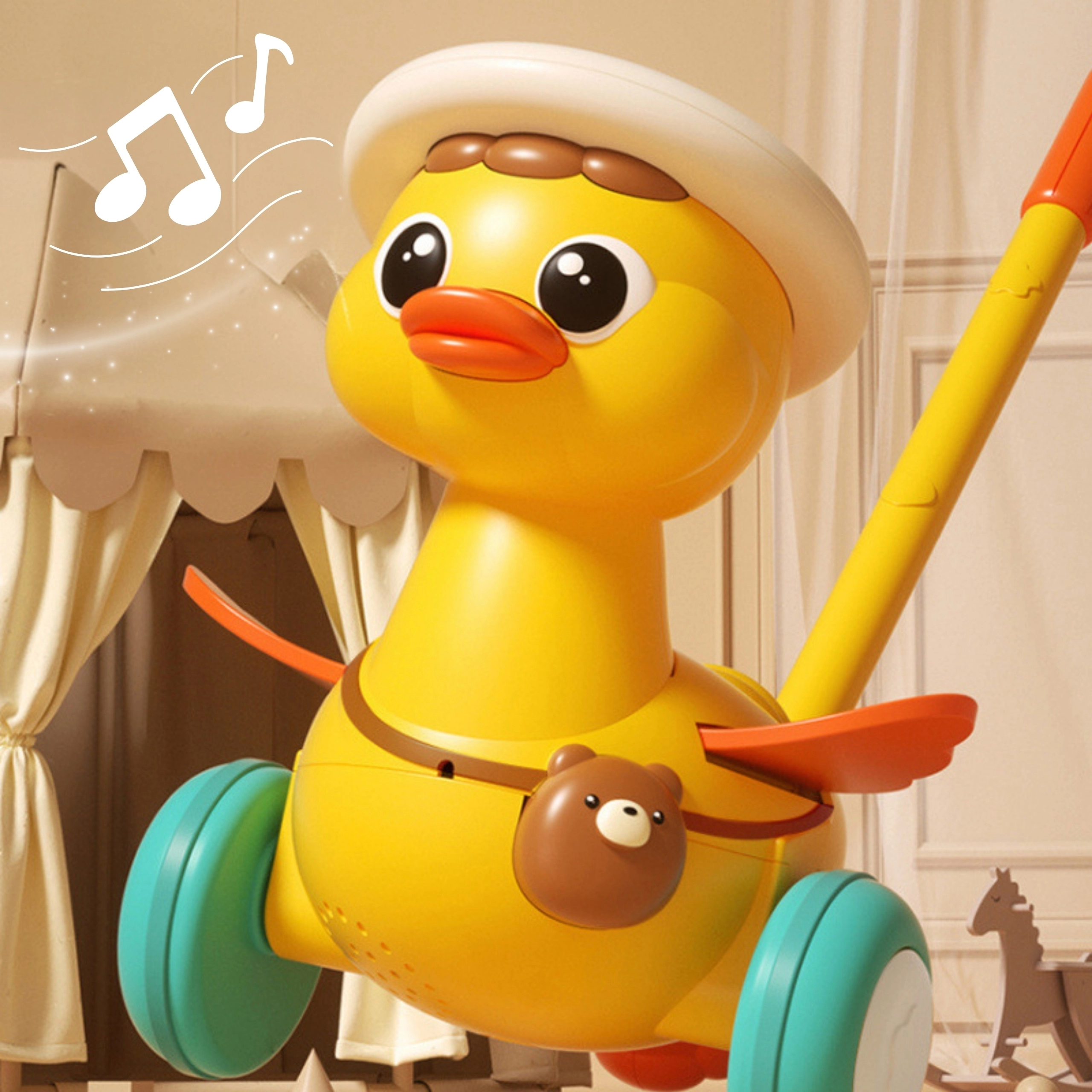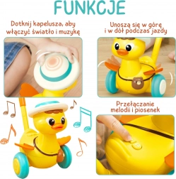 La graziosa anatroccola con bastoncino del marchio WOOPIE trasforma i primi passi in un gioco divertente. Durante il movimento sbatte le alucce, si illumina e riproduce allegre melodie. Grazie alla struttura leggera, alle ruote larghe e stabili e al facile controllo tramite pulsanti, i bambini se ne innamoreranno subito. Un ottimo compagno per lo sviluppo della motricità e dell'autonomia già dai 18 mesi.