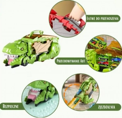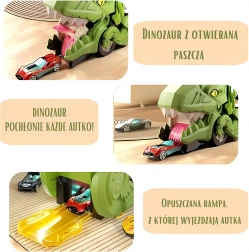 Scopri il mondo dei dinosauri e delle auto da corsa in uno! Questo camion dei dinosauri con rampa di WOOPIE funge da valigetta portatile con maniglia, deposito e pista da corsa. All'interno trovi 12 macchinine in metallo che puoi far scendere sulla rampa pieghevole. La bocca apribile, le parti mobili e i materiali resistenti e sicuri garantiscono ore di gioco creativo a casa e in viaggio.
