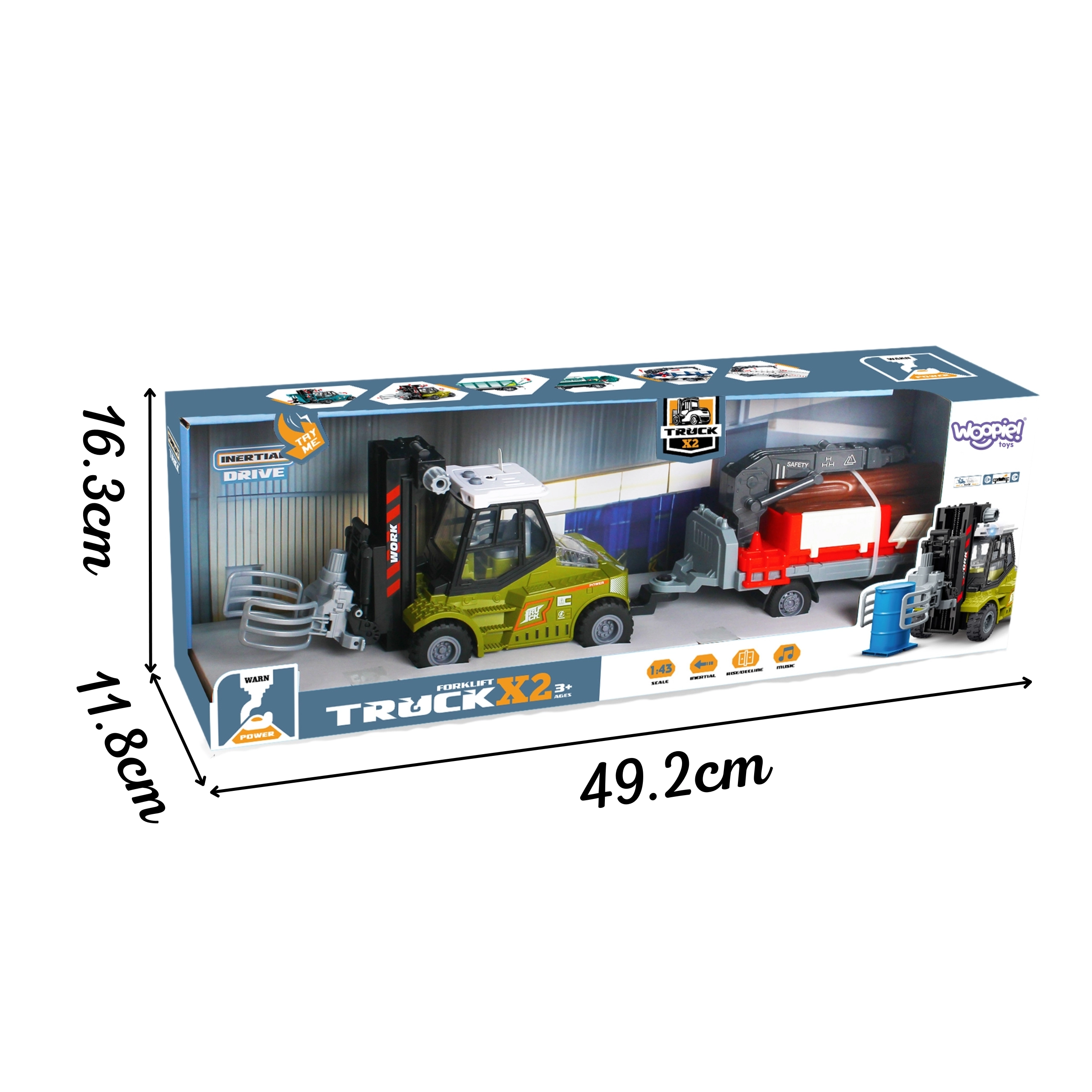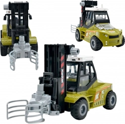 Il modello realistico in scala 1:43 entusiasmerà i piccoli appassionati di macchine da costruzione e trasporto. Il carrello elevatore dispone di trazione a inerzia: basta una spinta e avanza da solo. Il braccio mobile con presa a pinza consente di sollevare e trasportare i tronchi in legno, mentre il rimorchio con sponde apribili facilita il carico e lo scarico.