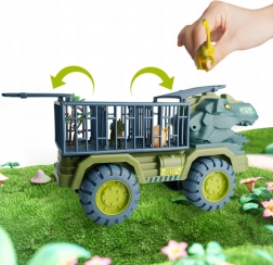 La confezione include: trasportatore di dinosauri, 15 figurine di dinosauri, uovo di dinosauro, decorazioni (alberello, rocce).