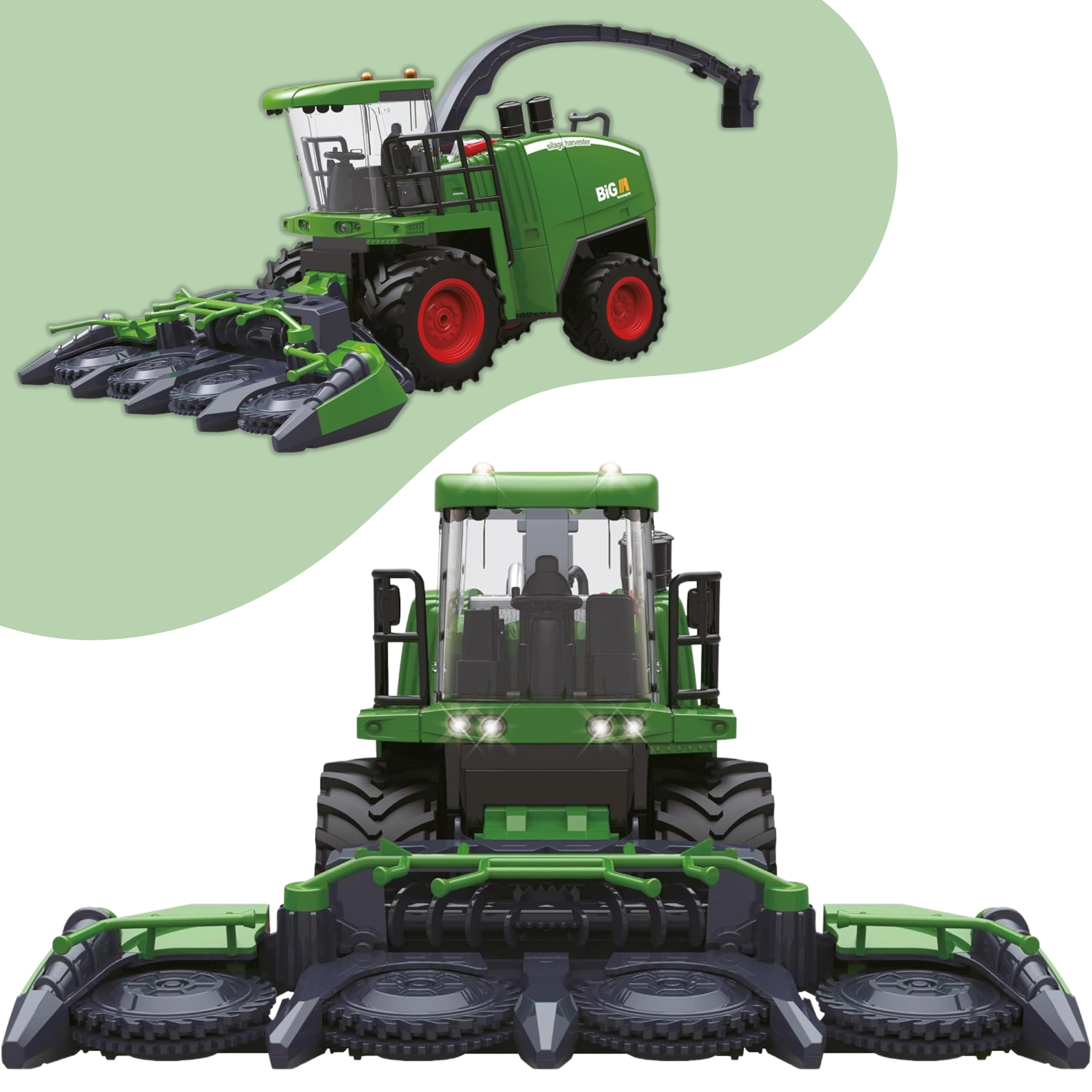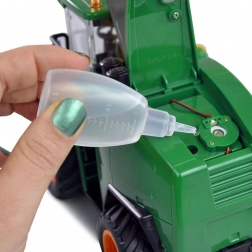 I LED anteriori si possono accendere e spegnere dal radiocomando e non mancano i realistici suoni del motore. L’effetto fumo, dopo l’aggiunta di acqua, crea l’atmosfera di una vera raccolta.