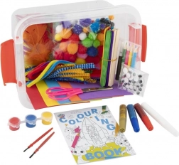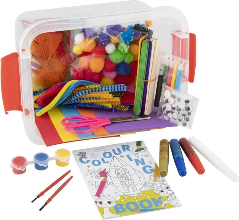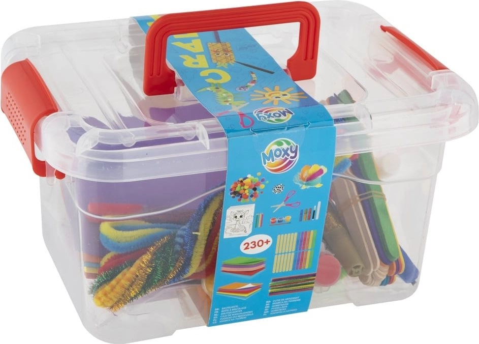 Sostieni la fantasia dei bambini con l’ampio set creativo MOXY! Include circa 240 pezzi tra fil di ciniglia, piume, pompon, colle con glitter, pennelli, colori e carta. Il set è ideale per bambini dai 3 anni che amano creare ed esplorare materiali diversi. Tutto è riposto in una pratica scatola 24 × 18 × 12 cm per un facile trasporto e ordine.