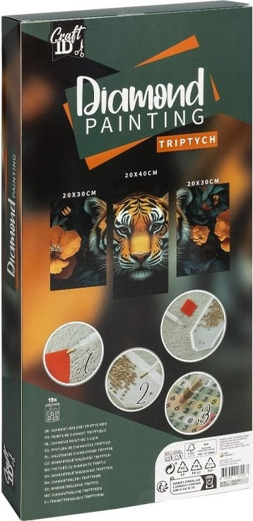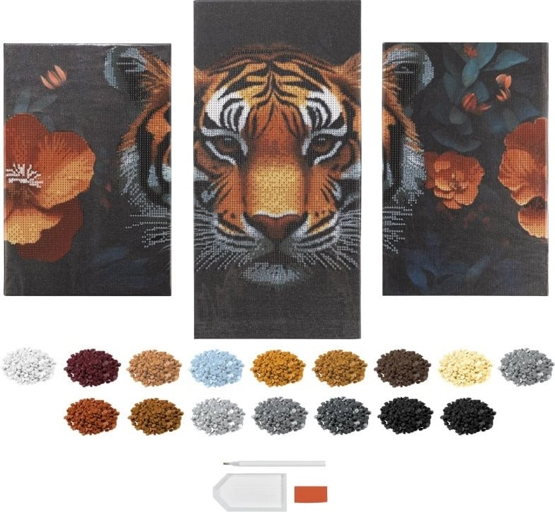Scopri la magia della pittura diamantata e crea un trittico originale con tigre che illuminerà qualsiasi interno. Ogni tela è dotata di strato autoadesivo e legenda stampata, così potrai posizionare facilmente le pietruzze al posto giusto. Il risultato è un quadro lussuoso e scintillante che spicca in salotto, camera da letto o stanza dei bambini.