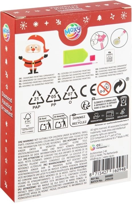 Crea la tua scintillante decorazione natalizia con il set MOXY. Questo kit creativo include 1 ornamento con motivo di BABBO NATALE, superficie autoadesiva e strass colorati. L’applicazione delle pietruzze seguendo i numeri è facile anche per principianti, sviluppa la motricità fine, la concentrazione e porta gioia alla creatività natalizia.