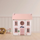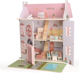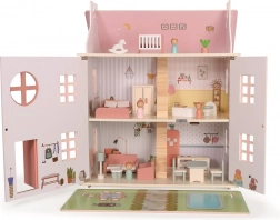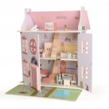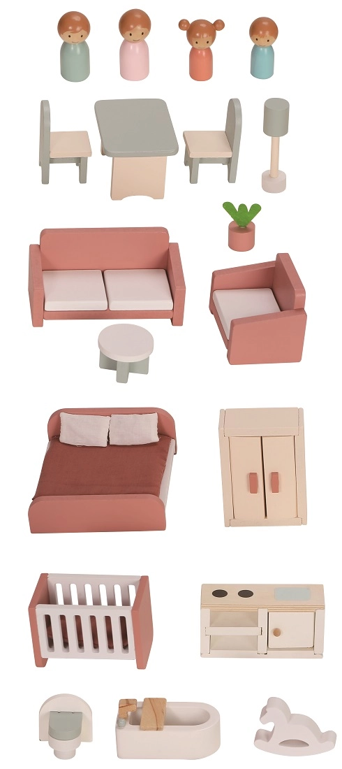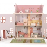 Questa casa senza tempo, realizzata in legno di qualità, conquisterà piccoli narratori e appassionati di design. Grazie ai tre livelli e alla disposizione ben studiata degli ambienti (cucina, bagno, soggiorno, camera da letto e cameretta in mansarda) offre lo spazio ideale per storie di famiglia e scenette quotidiane.