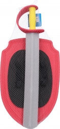 Set divertente per piccoli cavalieri: spada e scudo in schiuma di colore rosso per duelli sicuri e giochi creativi. Il materiale leggero, morbido e sicuro è ideale per i bambini; la spada lunga 57 cm e lo scudo di 27,5 × 41,5 cm si impugnano facilmente e stimolano la fantasia dei più piccoli.
