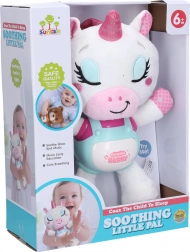 Un tenero compagno della nanna a forma di unicorno aiuta i bambini ad addormentarsi serenamente grazie alla combinazione di ninne nanne, musica rilassante, suoni di russare e un delicato effetto luminoso. Il controllo è semplice: basta premere il pancino per scegliere la modalità. Comodo interruttore on/off sul lato del giocattolo. Dimensione 29 cm, alimentazione con 3× batterie AAA (non incluse).