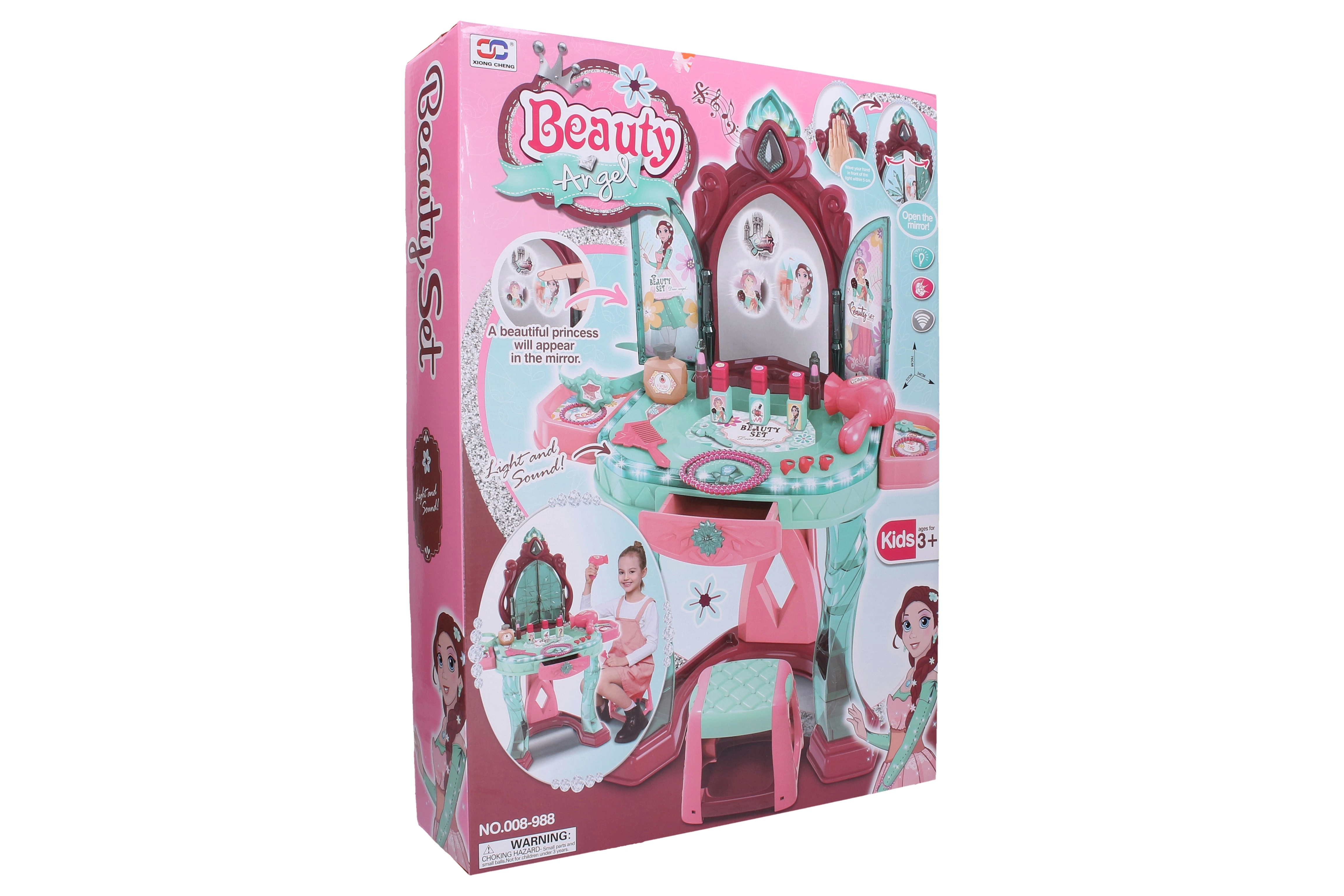 Regala ai bambini il loro angolo beauty: questo tavolino cosmetico con magici effetti luminosi e sonori trasforma il gioco delle principesse in un'esperienza indimenticabile. Con un gesto davanti al cristallo magico lo specchio si apre e compaiono immagini di principesse. Inclusi tavolino con specchio, sgabellino e accessori. Montaggio semplice seguendo le istruzioni sulla confezione.