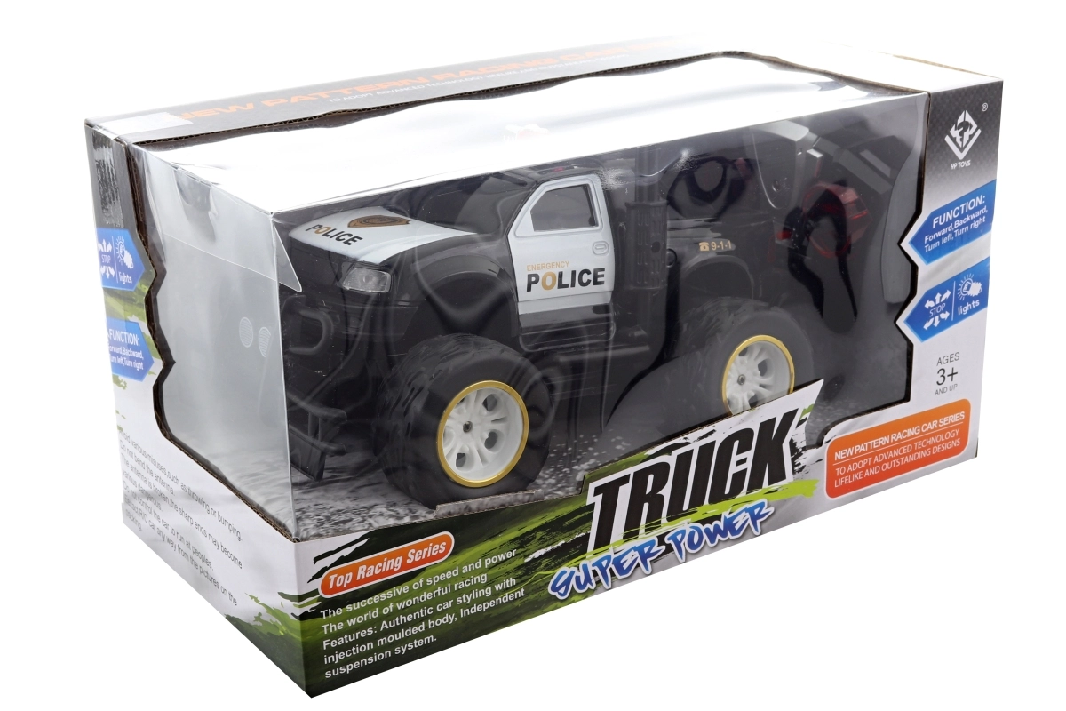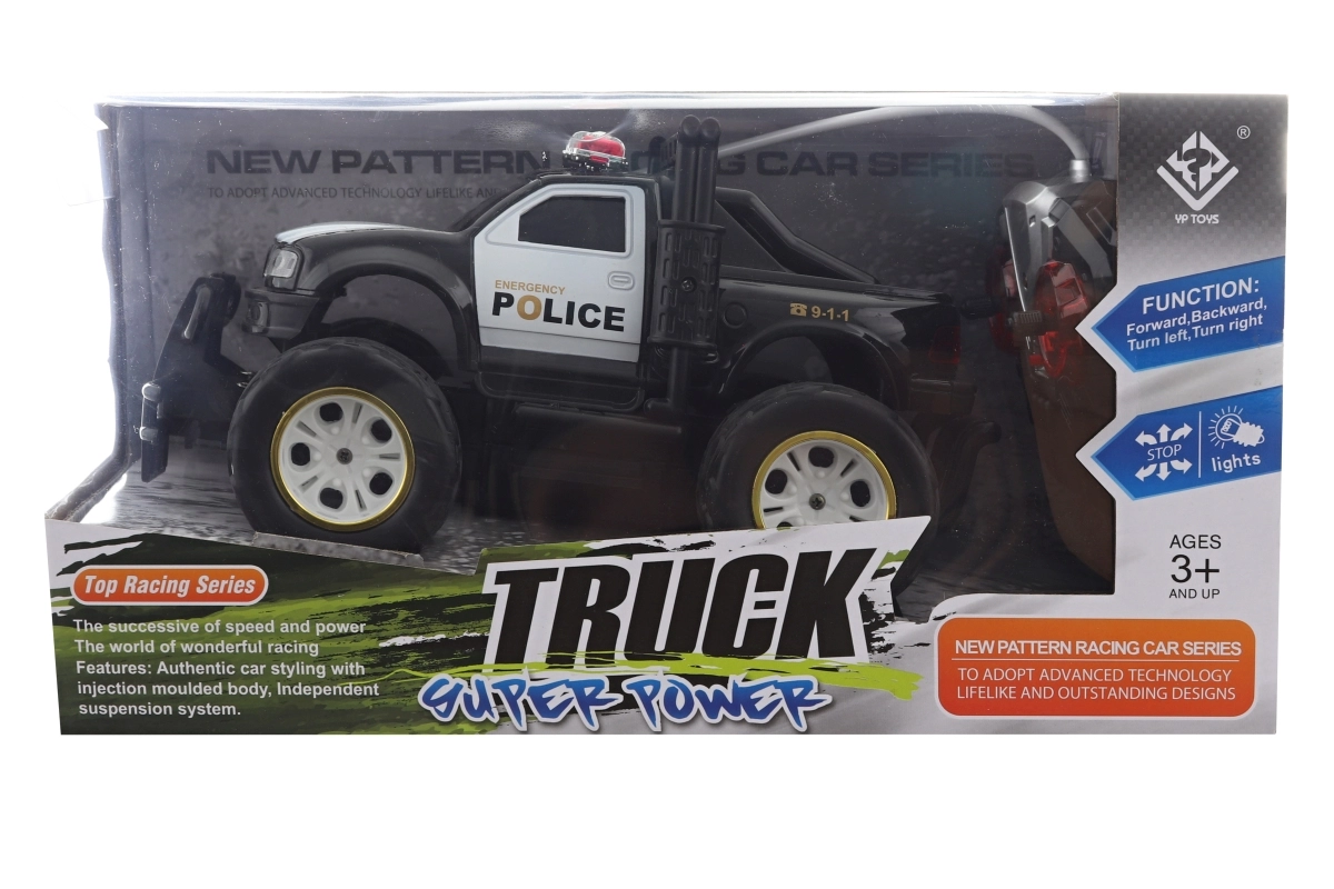 Divertente monster truck RC della polizia in scala 1:16, offre ai bambini dai 3 anni un’esperienza di guida dinamica in casa e all’aperto. Grazie alle grandi ruote fuoristrada, ai fari funzionanti e al semplice controllo sulla frequenza 27 MHz, supera ostacoli e superfici più irregolari. L’auto è alimentata da 4× AA, il radiocomando da 2× AA (batterie non incluse).