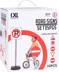 Contenuto della confezione: 5 figure di segnali, 5 basi riempibili, 10 tubi di montaggio, 5 connettori, 5 adesivi con simboli.