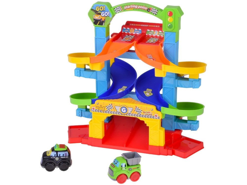 Colorata pista a spirale con più livelli e due simpatiche macchinine offre ore di divertimento e sviluppo. Grazie al montaggio semplice e alla struttura sicura, i bambini si divertiranno a osservare le macchinine sfrecciare sulle rampe elicoidali. Il set include 2 veicoli (polizia e camion ribaltabile), discesa girevole multilivello, porta di partenza e struttura in plastica resistente, ideale già dai 18 mesi.