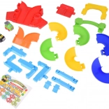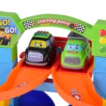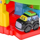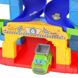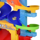 Pista automobilistica a spirale per bambini con auto della polizia e camion ribaltabile, 19 pezzi