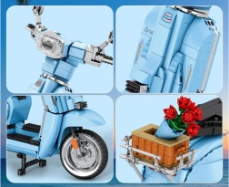 Il kit è intelligentemente suddiviso in bustine e corredato di adesivi con dettagli, per una costruzione chiara e divertente. Una volta completato il modello, apprezzerai la struttura solida, il cavalletto funzionale e le proporzioni autentiche dello scooter leggendario.