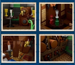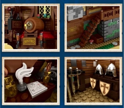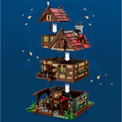 Questa grande capanna/taverna medievale è il luogo ideale per cavalieri e nobili dopo spedizioni impegnative. Ti aspetta un interno ed esterno riccamente lavorati: dalla botte con “birra alla spina”, ai tavoli con calici fino all’armeria con spade e scudi. Grazie ai 2868 pezzi costruirai un edificio dettagliato con più livelli e decorazioni che stimolano la fantasia e la narrazione.