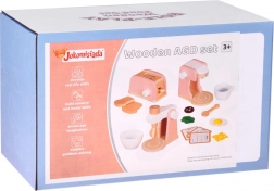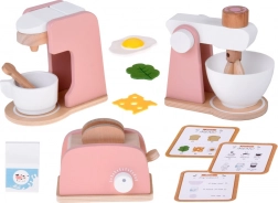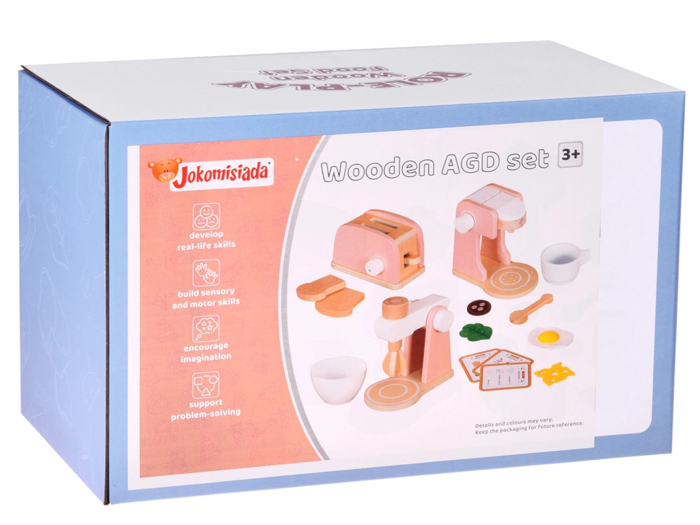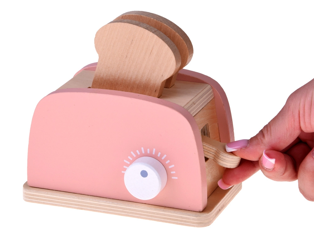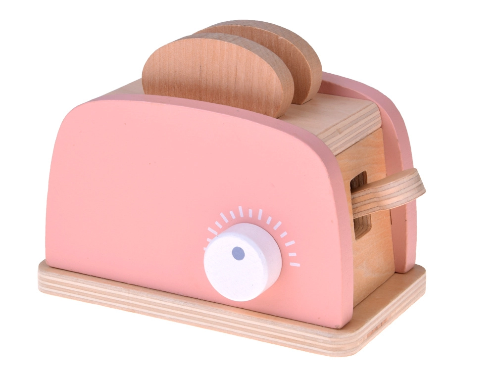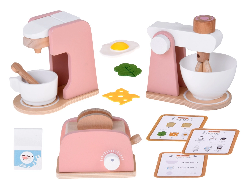 Trasforma il gioco quotidiano in cucina in un’esperienza realistica. Il set di elettrodomestici in legno offre tutto per preparare la “colazione” – dal toast che salta fuori al caffè fragrante fino alle golosità mescolate. La struttura resistente in legno, i bordi lisci e i toni delicati sono ideali per la cameretta.