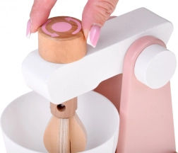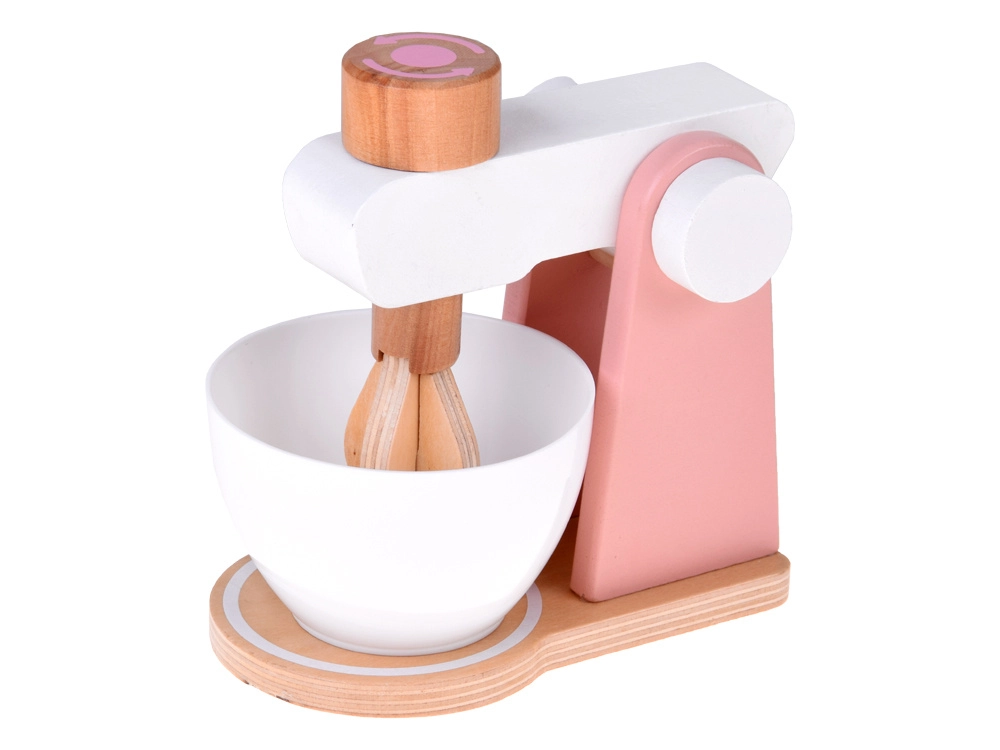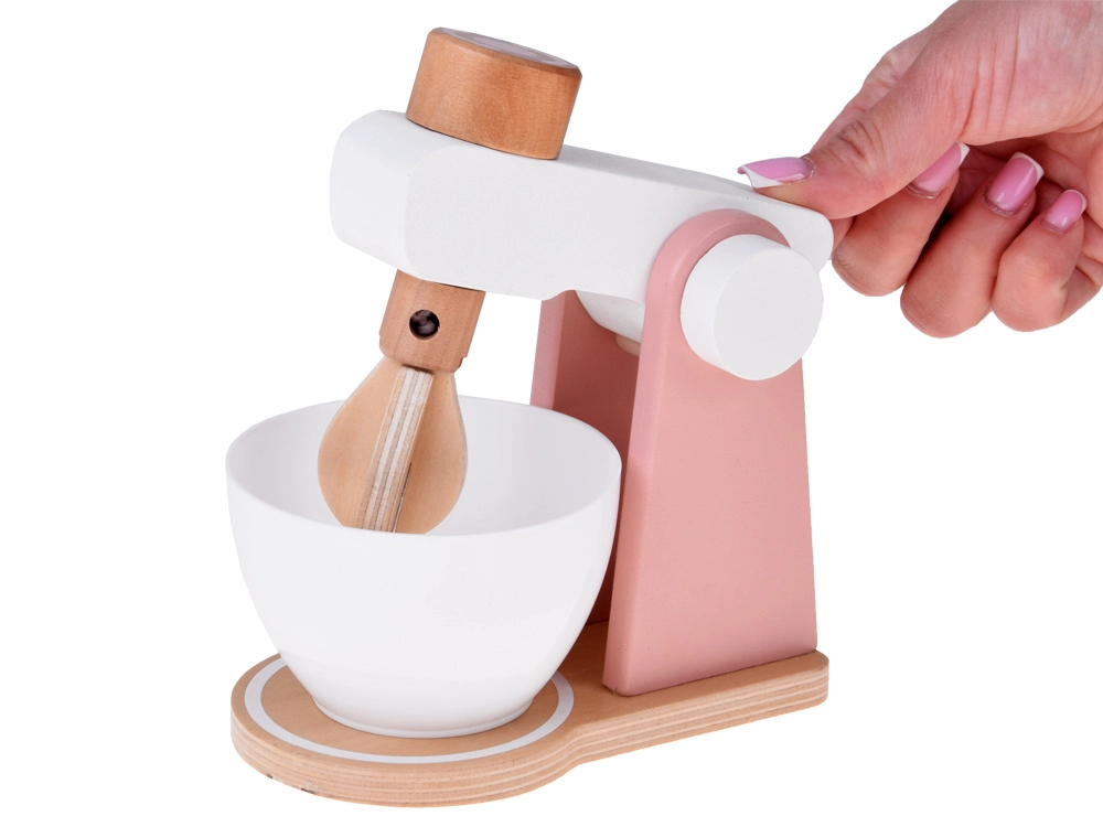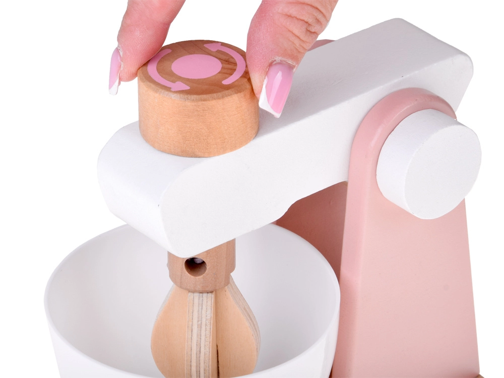 Struttura in legno stabile, ciotola rimovibile e manopola funzionale per simulare la miscelazione di impasti o creme. Ideale per il piccolo pasticcere.