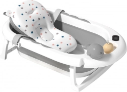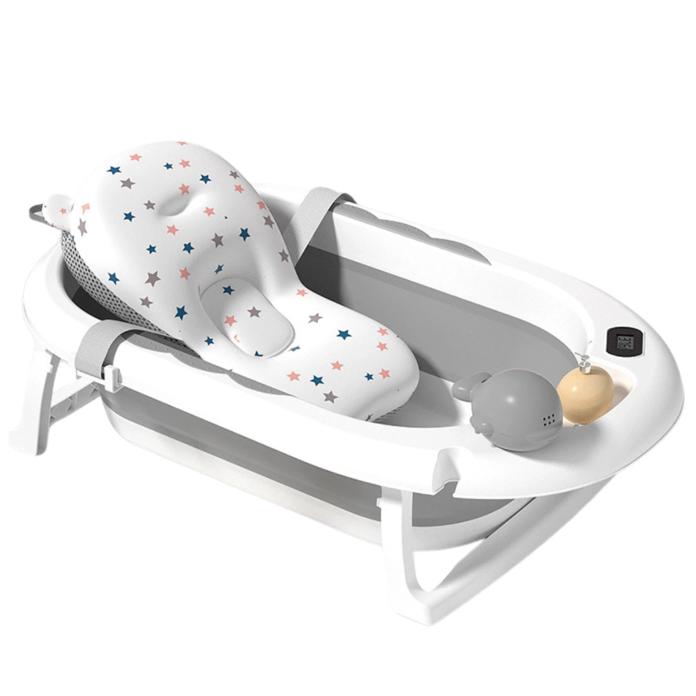 Vaschetta pratica e sicura per neonati che facilita ogni bagnetto. Grazie al termometro elettronico integrato avrai la temperatura dell’acqua sotto controllo in tempo reale. La struttura pieghevole fa risparmiare spazio, i piedini antiscivolo garantiscono stabilità e il morbido supporto in schiuma offre un sostegno confortevole anche ai più piccoli.