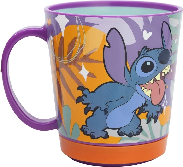 Tazza in plastica dal design elegante con motivo STITCH e tecnologia intelligente SmartGrip per evitare le fuoriuscite. Il fondo antiscivolo e fonoassorbente aderisce saldamente alle superfici lisce, così la tazza non si rovescia, ma può essere sollevata facilmente in qualsiasi momento. Leggera, resistente e ideale per l'uso quotidiano o come regalo originale.