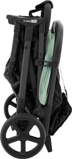 Il passeggino si ripiega rapidamente in un formato compatto, così da poterlo riporre comodamente nel bagagliaio dell’auto o trasportarlo su per le scale.