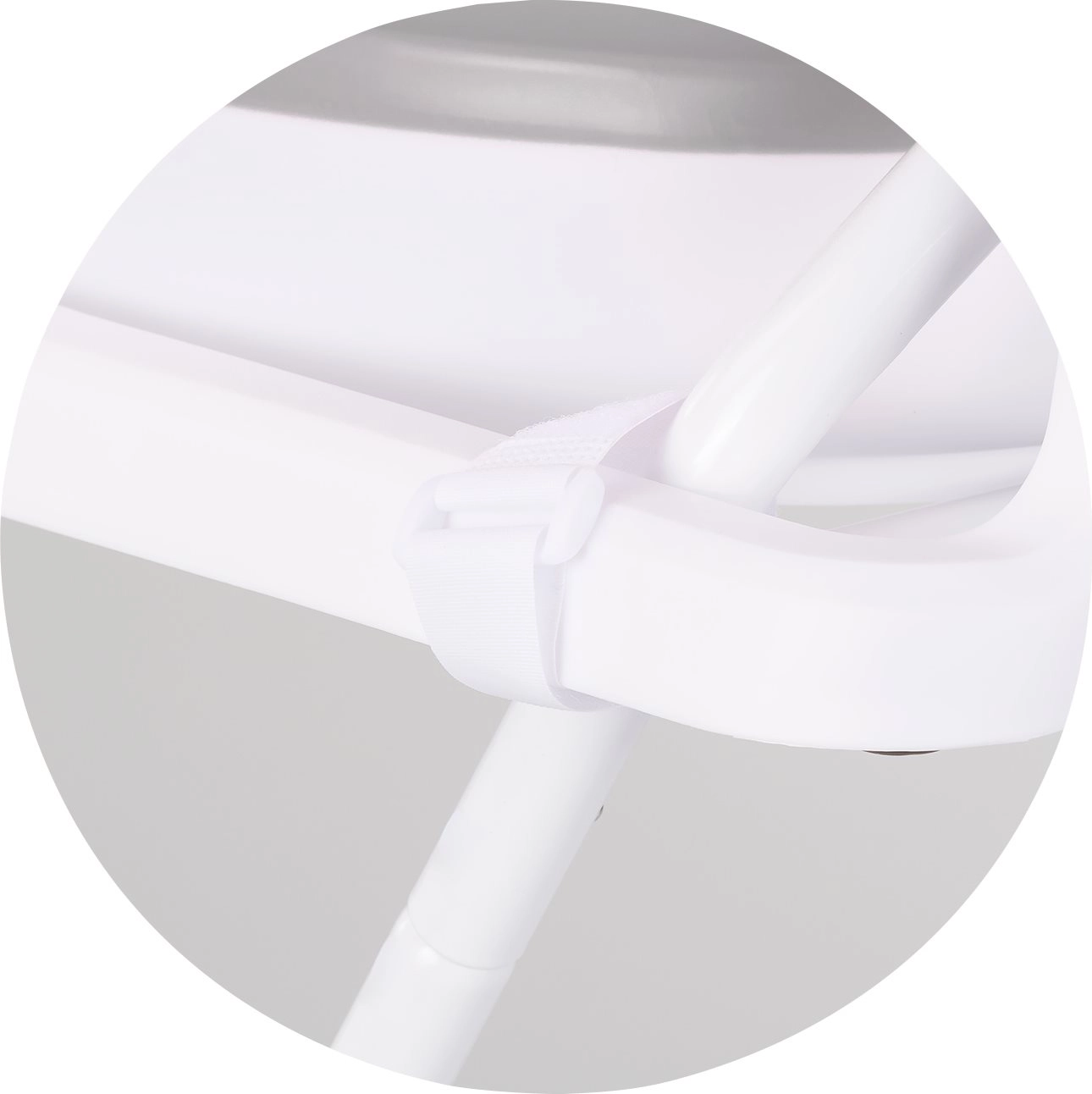 Il solido supporto in metallo porta la vaschetta a un’altezza comoda, preservando la schiena dei genitori. Gli elementi antiscivolo garantiscono un uso sicuro su diverse superfici e le superfici lisce sono facili da pulire. Con un design moderno e compatto, la vaschetta si adatta a qualsiasi bagno ed è ideale anche per spazi ridotti o per i viaggi.