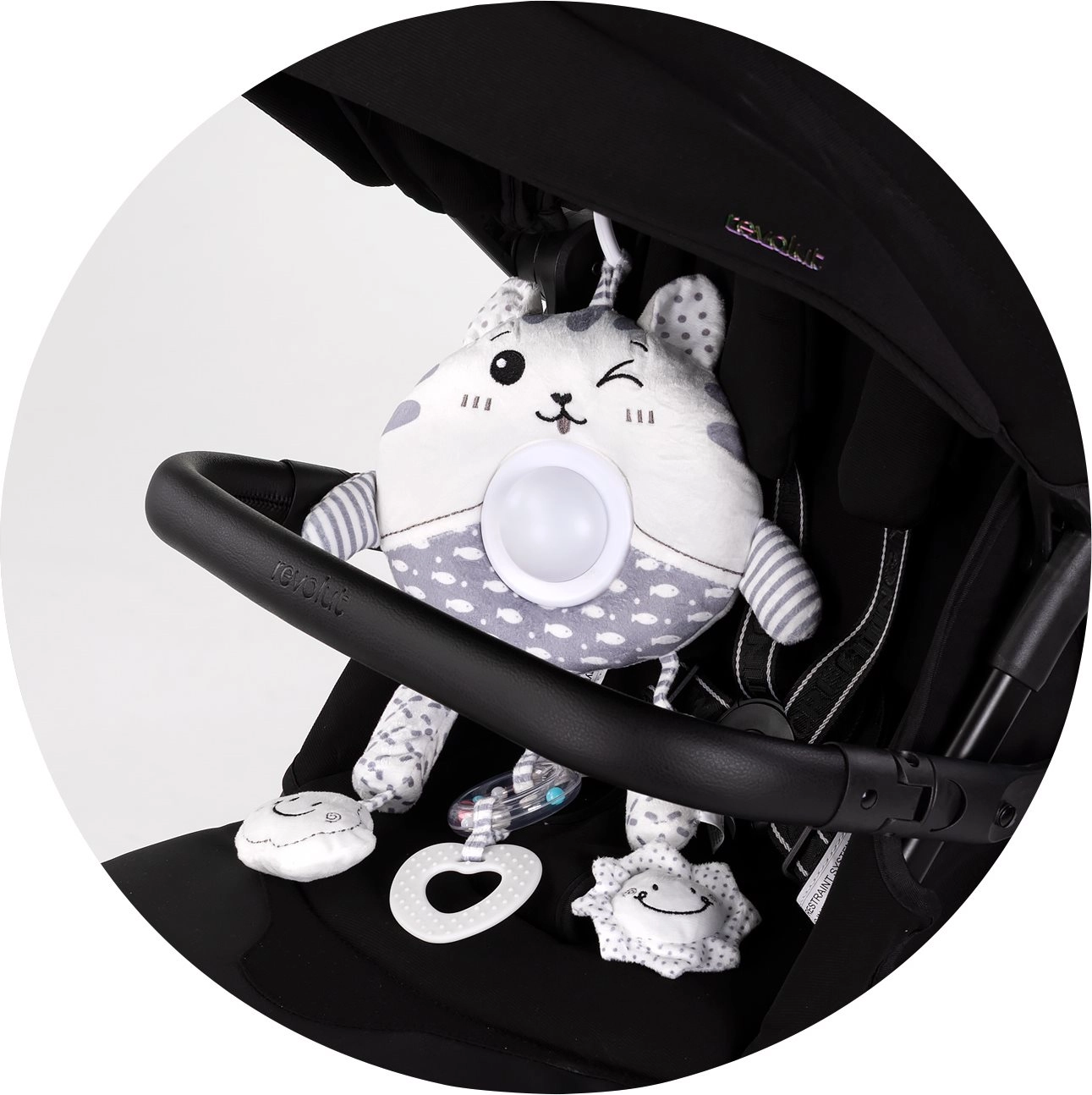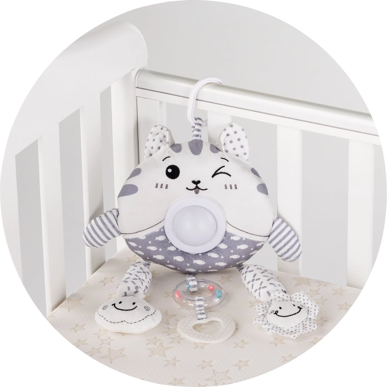 La gattina di peluche Big Kitty è la compagna ideale per il bebè: calma, diverte e stimola la percezione sensoriale. Grazie al gancio universale si fissa facilmente al passeggino, al seggiolino auto o al lettino. Materiali piacevoli, colori tenui ed effetti luminosi creano un’atmosfera serena per il gioco e la nanna.