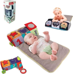Colori a contrasto, texture e piccoli giochini favoriscono lo sviluppo della vista, del tatto e della coordinazione. Grazie al peso ridotto, il set è ideale sia a casa sia in viaggio – sempre pronto per un gioco sicuro e momenti di relax.