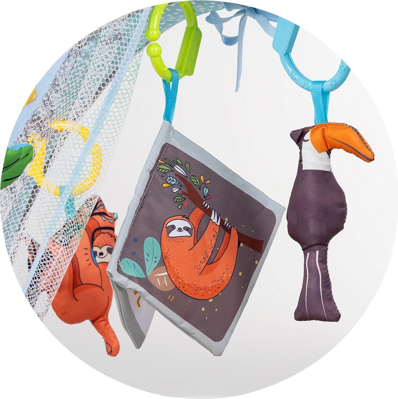 Il tappeto gioco CHIPOLINO Jungle è la scelta ideale per la prima area giochi del tuo bebè. Il tappetino morbido e confortevole con design colorato stimola vista, udito e motricità fine, mentre i giochini sospesi, lo specchietto e gli effetti di luce e suono motivano all’esplorazione e al movimento.