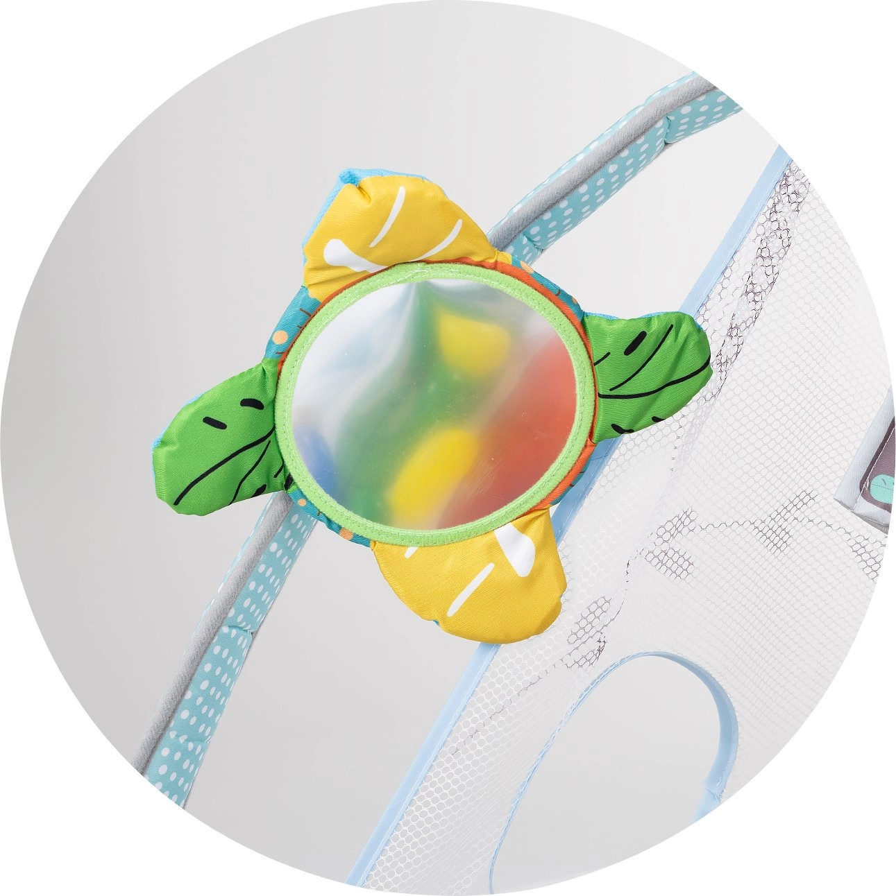 Il tappetino imbottito con bordi laterali e rete trattiene le palline al loro posto e offre al bebè un ambiente morbido e sicuro per il gioco.