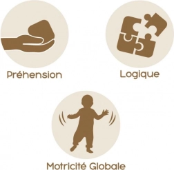 I bambini ameranno gli elementi vivaci e colorati: labirinto di perline, ingranaggi rotanti, torre per palline e gioco di inserimento forme. Ogni attività è pensata per sostenere lo sviluppo motorio, la pazienza e la comprensione di causa ed effetto.