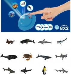 Proiettore con motivi marini, 2 dischi di proiezione, figurine di animali marini