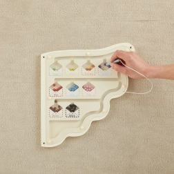 La tavola è progettata per un’interazione quotidiana sicura: bordi lisci, fissaggio stabile alla parete e disposizione delle attività studiata con cura. I bambini allenano pazienza, concentrazione e coordinazione dei movimenti, sviluppando in modo naturale competenze importanti per l’età prescolare.