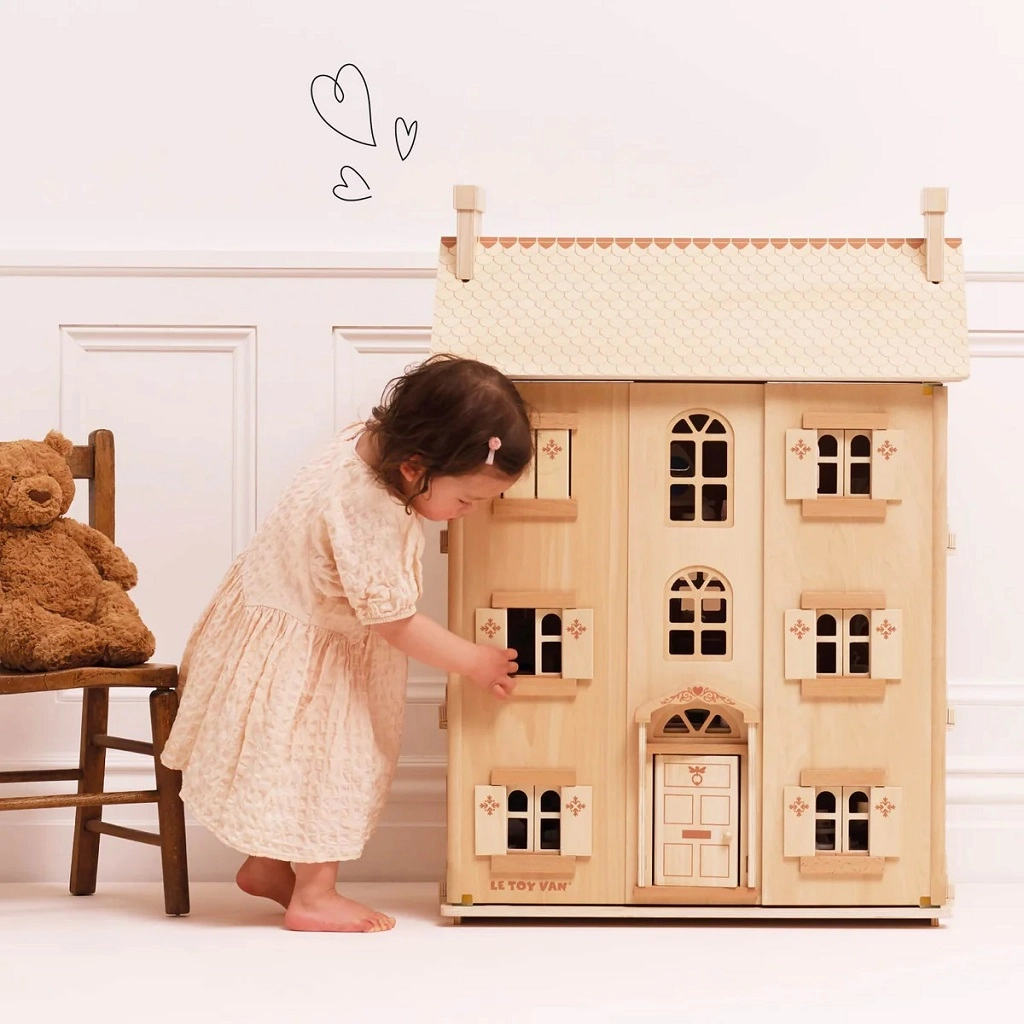 LE TOY VAN pone l’accento sulla produzione etica, materiali sostenibili e durata. La casetta è senza plastica, adatta ai bambini dai 3 anni e può essere completata con mobili in legno, bambole e altri accessori (non inclusi). Grazie all’alta qualità costruttiva è ideale da condividere tra fratelli e da tramandare tra generazioni.