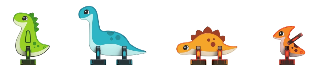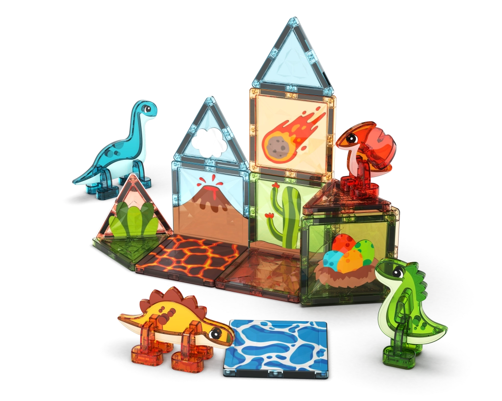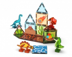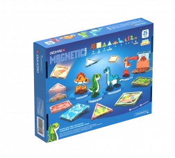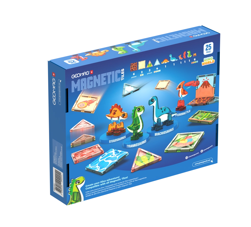 Nella confezione sono incluse anche 4 figurine di dinosauri, che aggiungono una storia al gioco e trasformano ogni costruzione in un'avventura. Il set è ideale per un primo approccio ai principi del magnetismo, lo sviluppo della motricità fine e del pensiero logico.