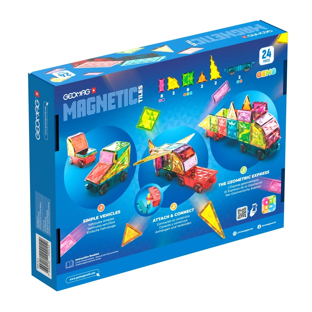 Scopri il divertente set magnetico Geomag Magnetic Tiles Auto, con cui i bambini possono creare facilmente figure 2D e veicoli 3D. I pezzi con magneti su tutti i lati tengono saldamente, favoriscono creatività, immaginazione e motricità fine e, grazie ai telaî con ruote, i modelli pronti si mettono davvero in movimento.