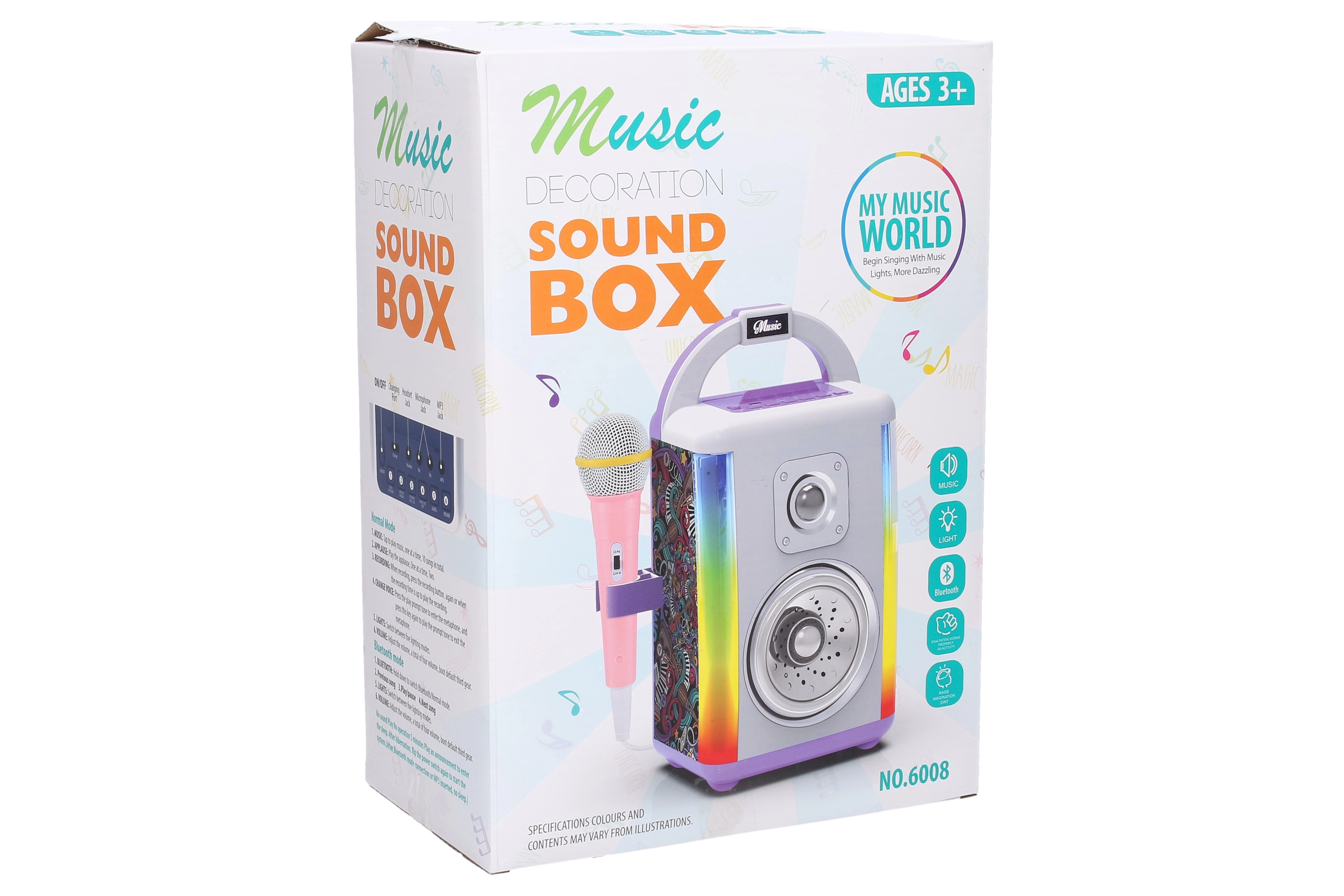 - Music box, 1× microfono, descrizione delle funzioni sulla confezione e all’interno